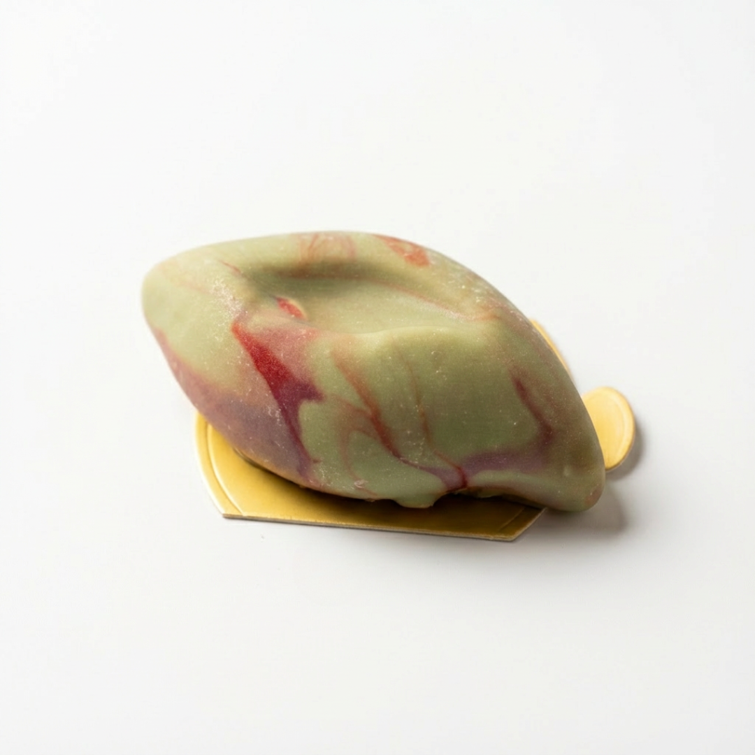 Unter der feinen, schokoladigen Hülle verbirgt sich eine samtig-zarte Pistazienmousse, im Inneren veredelt mit einem aromatisch-intensiven Pistazienkern. Nussige Eleganz und edle Schokolade verschmelzen zu einem Genussmoment, der raffiniert überrascht und lange in Erinnerung bleibt.